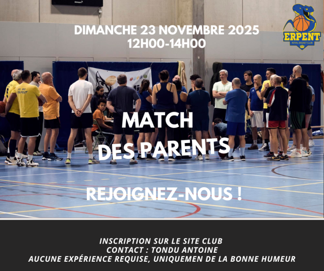 Le moment tant attendu par de nombreux parents est enfin arrivé, nous lançons la 7e édition du match des parents. Ce match aura lieu le 23 novembre 2025 à Jambe Souvenir.
